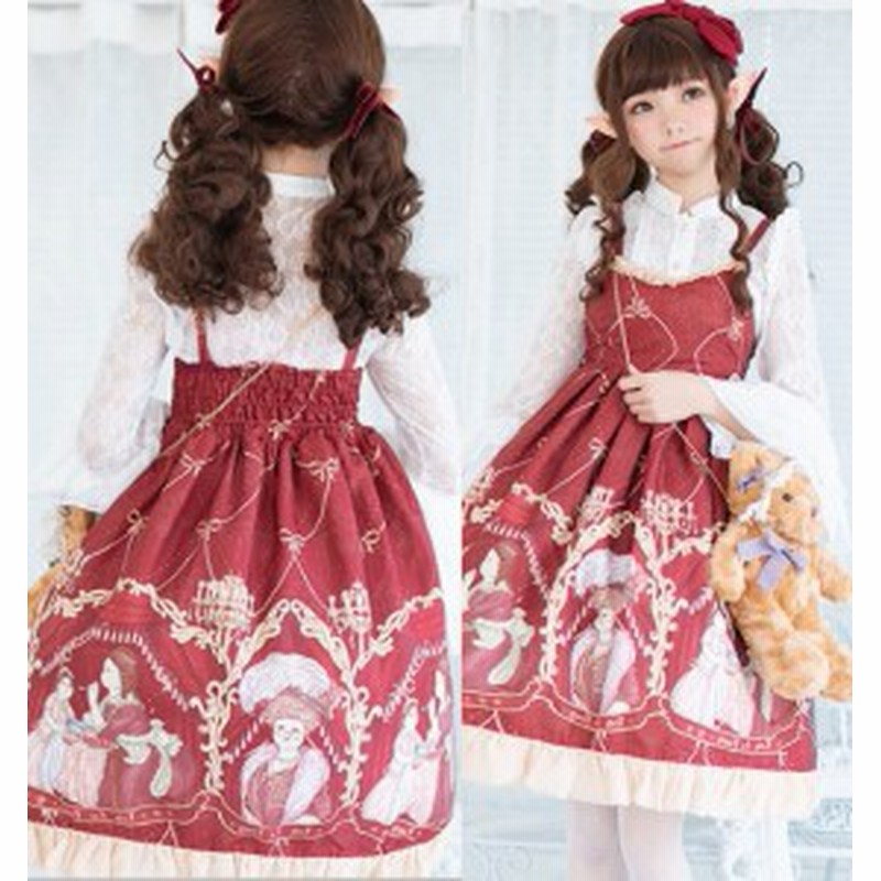 楽天市場 ロリータ ワンピース ジャンパースカート ロング 秋冬 ドレス 優雅 ゴールドプリント ロリィタ ノースリーブ レース フリル Alice Doll